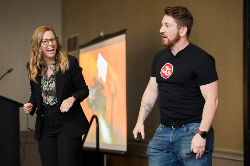 In this compelling 45-minute keynote, business partners Jeff Gibbard and Sarah Ohanesian take you inside their unlikely partnership. Jeff is the chaotic entrepreneur who sees patterns no one else can see and sends seventeen ideas at 2 AM. Sarah is the strategic leader who thrives on structure and needs time to process. They shouldn’t work together, but they do. In fact, it’s one of the specific reasons that clients choose them and love them.